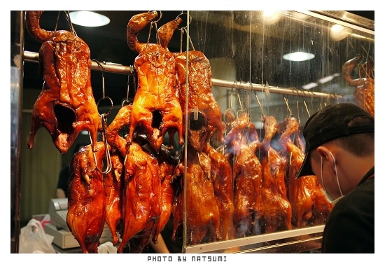 每一隻金黃飽滿的烤鴨就掉在櫥窗裡面,